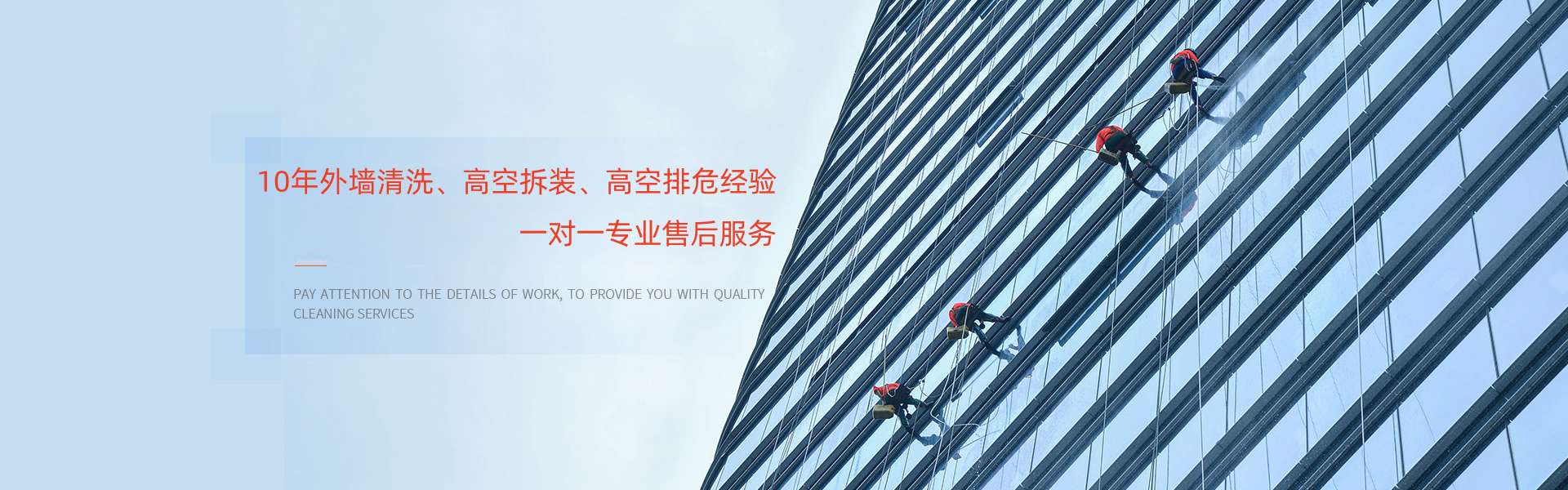 专业服务于企业、个人家庭等行业外墙清洗、高空维修作业等服务! 咨询热线:19122443878